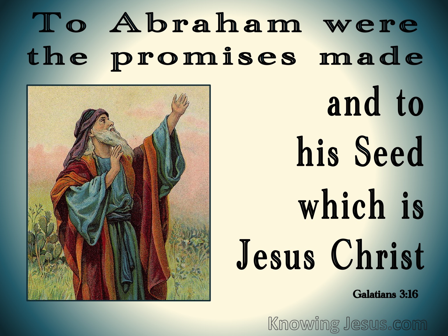 Now the promises were spoken to Abraham and to his seed. He does not say "and to seeds," as though referring to many, but and to your seed, referring to one, who is Christ.